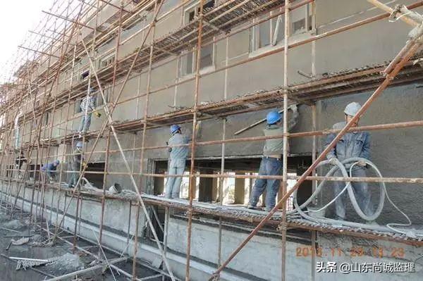 技術交底→一遍保溫→二遍保溫→抗裂砂漿→網(wǎng)格布→抗裂砂漿→彈建筑1米線→門窗交接→門窗收口→清理→門窗打膠→安裝玻璃→一遍膩子→二遍膩子→打磨→底漆→一遍面漆→二遍面漆