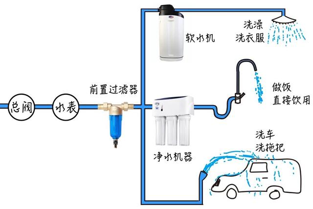心思周到的小伙伴,早就開始考慮前置過濾器+凈水器+軟水機等一系列設備了,從源頭杜絕污染水進入家門。