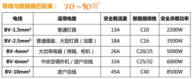 具體的電線和斷路器怎樣匹配,看下面兩張圖: