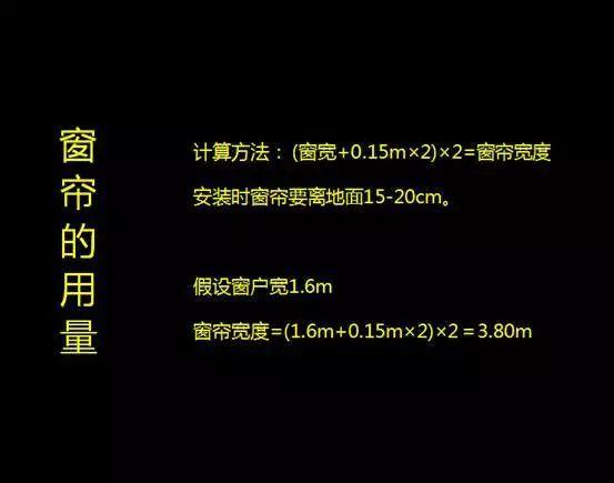注:普通窗簾多為平開簾,首先根據(jù)窗戶的規(guī)格來確定窗簾的大小,其次窗簾要蓋住窗框左右各0.15m,并且打兩倍褶。