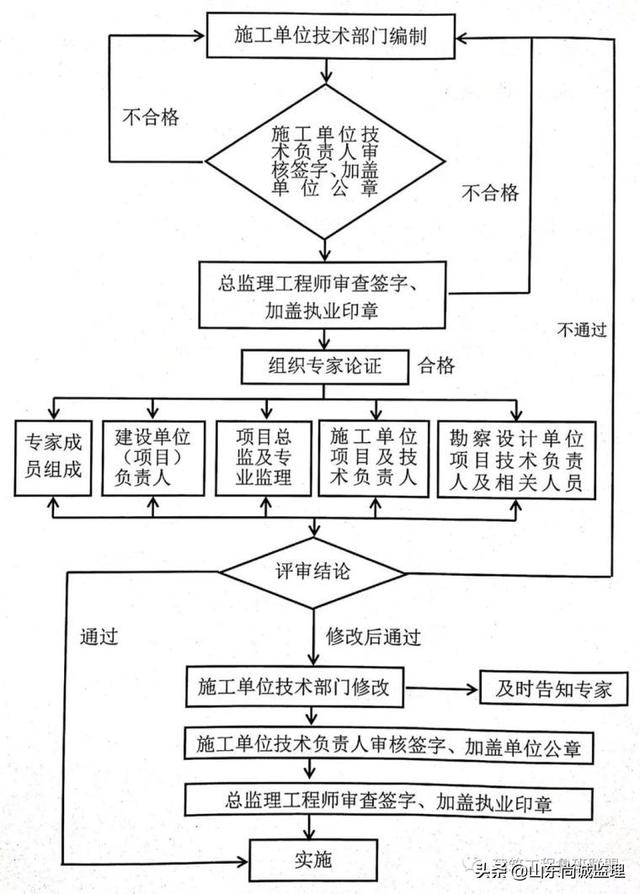 專項(xiàng)施工方案經(jīng)論證需修改后通過的,施工單位應(yīng)當(dāng)根據(jù)論證報(bào)告修改完善后,專項(xiàng)施工方案應(yīng)當(dāng)由施工單位技術(shù)負(fù)責(zé)人審核簽字、加蓋單位公章,并由總監(jiān)理工程師審查簽字、加蓋執(zhí)業(yè)印章后方可實(shí)施。