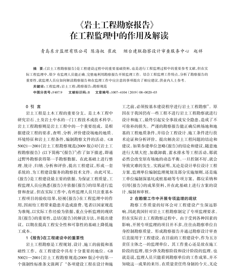 《巖土工程勘察報告》在工程監(jiān)理中的作用及解讀