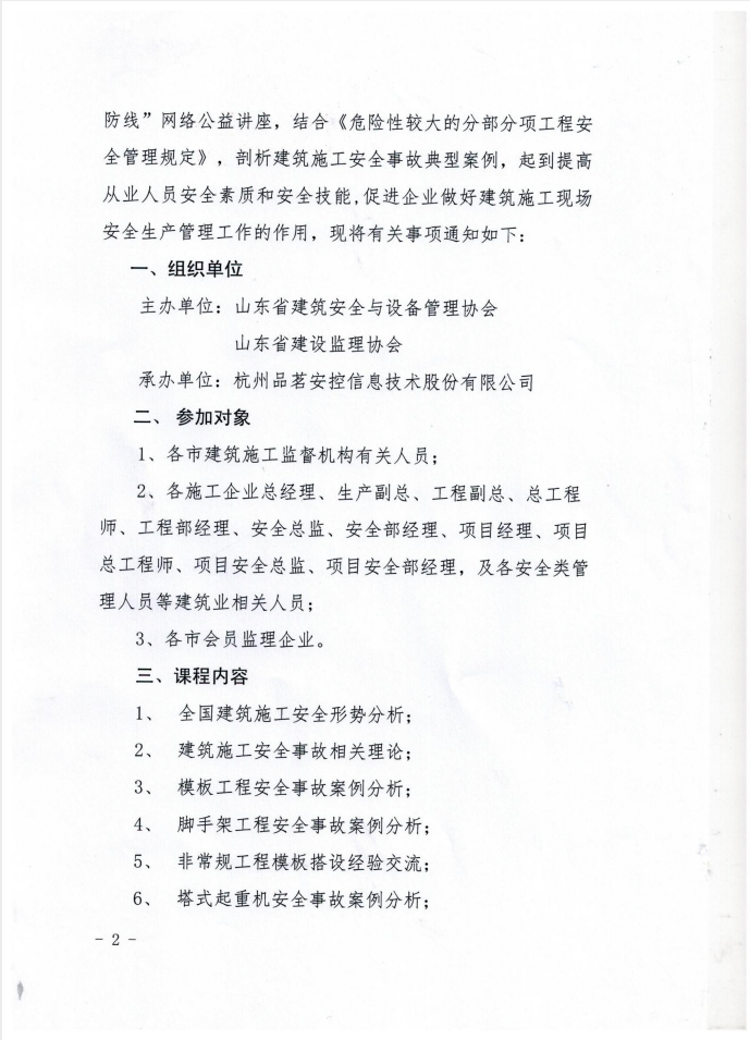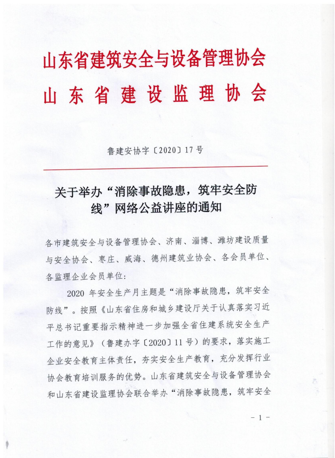 關于舉辦“消除事故隱患,筑牢安全防線”網(wǎng)絡公益講座的通知