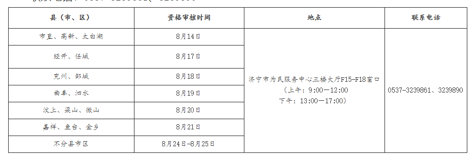資格審核地點(diǎn):濟(jì)寧市為民服務(wù)中心三樓大廳F15-F18窗口(濟(jì)寧市太白湖新區(qū)圣賢路7號(hào))