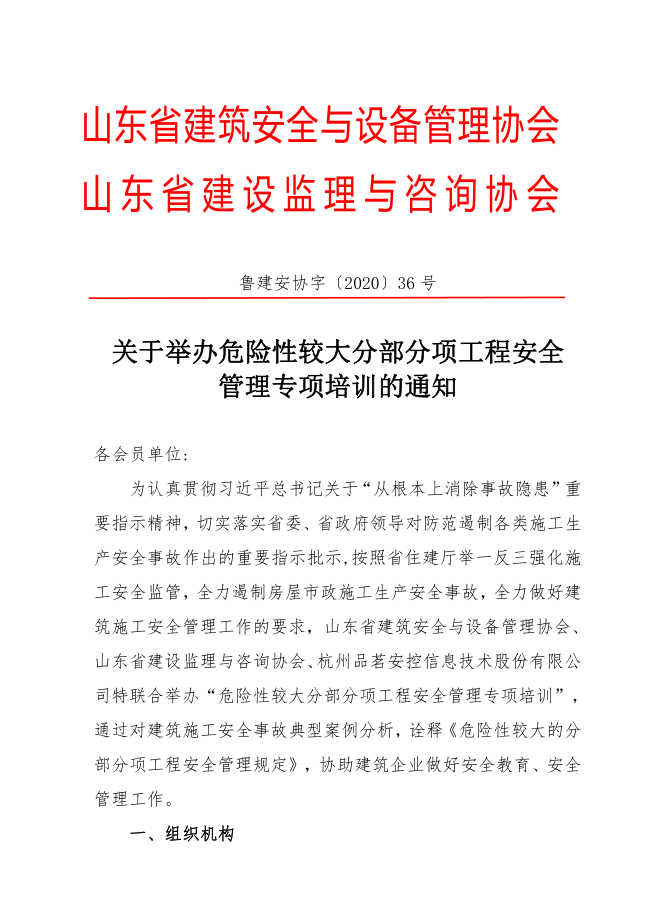關(guān)于舉辦危險(xiǎn)性較大分部分項(xiàng)工程安全管理專項(xiàng)培訓(xùn)的通知
