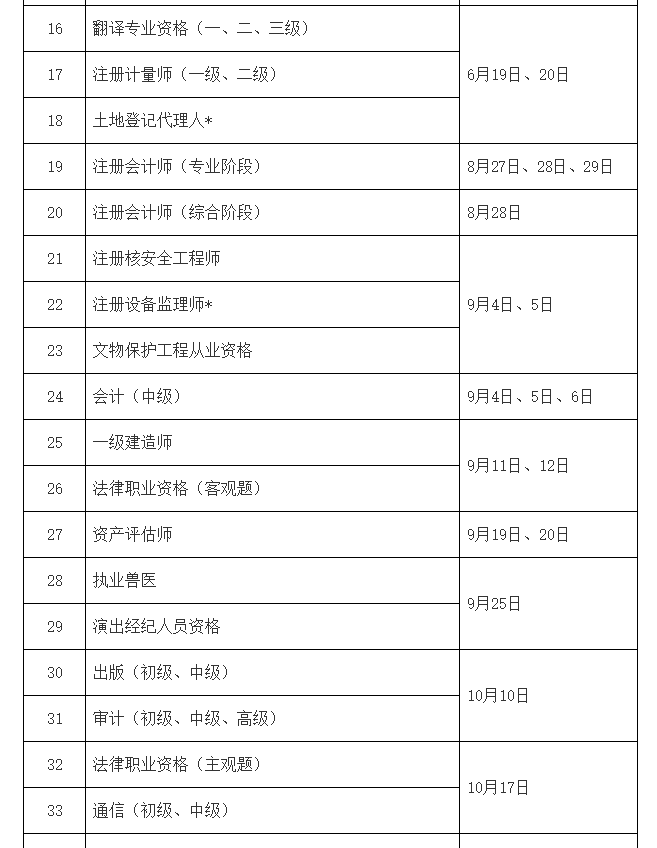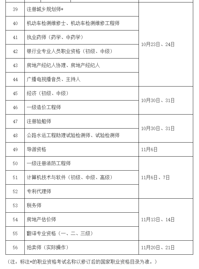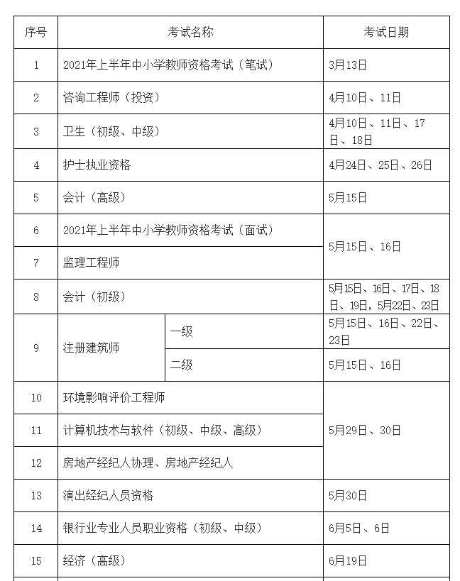 為做好專業(yè)技術人員職業(yè)資格考試規(guī)劃和管理工作,便于廣大專業(yè)技術人員參加職業(yè)資格考試,經(jīng)商有關部門同意,現(xiàn)就2021年度專業(yè)技術人員職業(yè)資格考試計劃及有關事項通知如下: