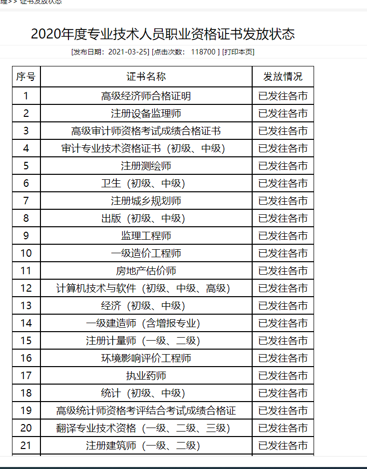 2020年度專業(yè)技術(shù)人員職業(yè)資格證書發(fā)放狀態(tài)