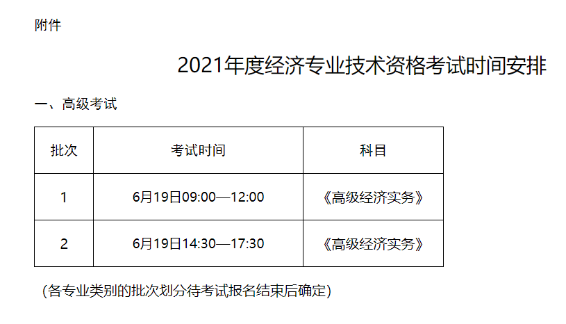 附件:2021年度經(jīng)濟專業(yè)技術資格考試時間安排