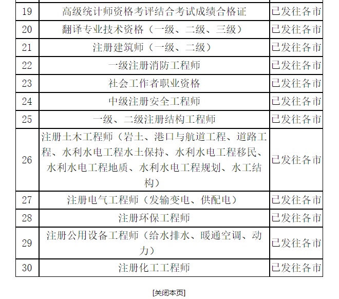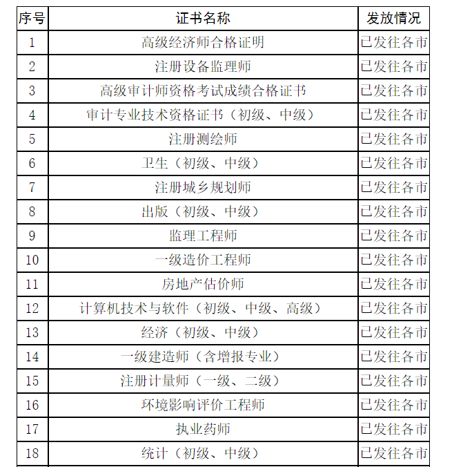 2020年度專業(yè)技術(shù)人員職業(yè)資格證書發(fā)放狀態(tài)